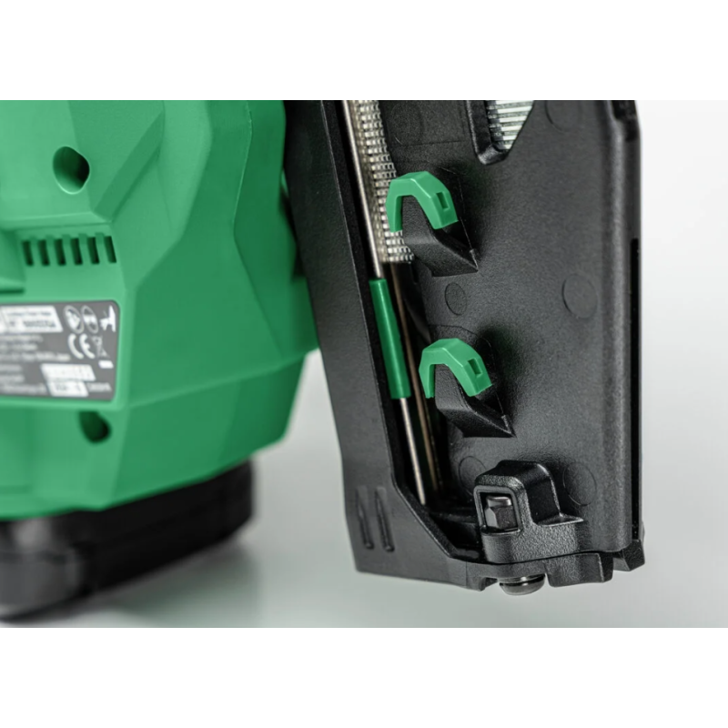 - HiKOKI Air Spring System mahdollistaa kaasuttoman ja savuttoman käytön vakaalla suorituskyvyllä ja pehmeällä, paineilmankaltaisella tuntumalla ilman letkujen ja kompressorien aiheuttamia vaaroja.